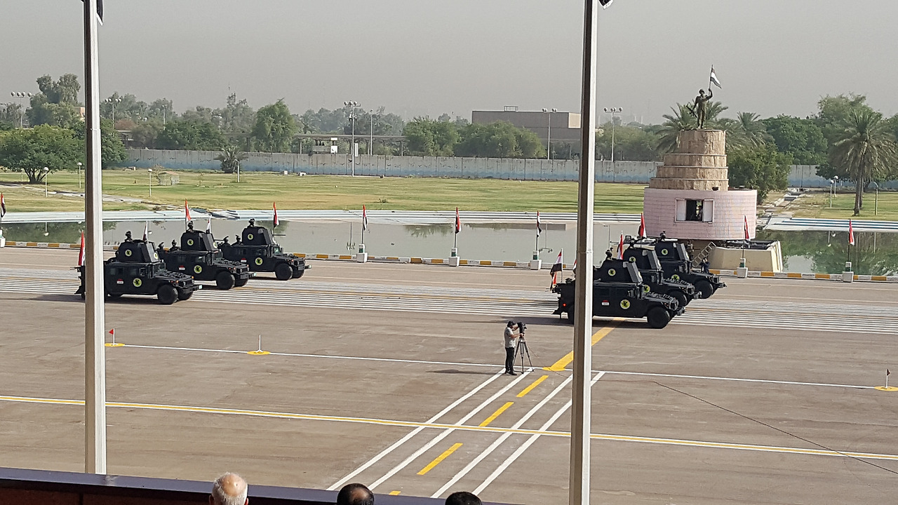 2017년 7월 15일, 이라크는 IS로부터 모술 탈환과 공화국의 날을 기념하여 바그다드 그린 존에서 대규모 군사 행진을 개최했다. 기수단은 어느 나라든 등장하는데 뒤를 이어 이라크 상징인 매와 지도가 그려진 간판 모양의 패널을 들고 지나가는 모습이 독특했다.