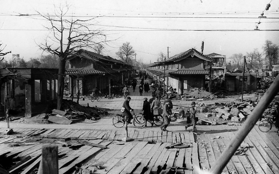 도쿄에는 매일 같이 공습경보가 울렸다. 이제 훈련은 없었다. 미국의 폭격기는 거리낌 없이 도쿄의 상공을 드나들었다. 나는 방공부대 소속이었다. 그러나 우리가 하는 짓은 나무막대기로 바닷새를 잡으려는 짓이나 다름없었다. 미국의 폭격기는 제국의 총알이 닿지 않는 하늘에서 폭탄을 떨어뜨렸다.
