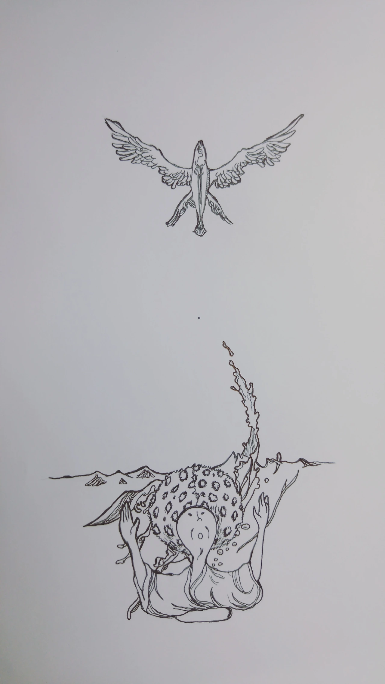 공주의 말을 들은 그는 다시 한 번 공주에게 절을 올렸다. 그리고 공주에게 허락을 받고 영원히 하늘을 나는 물고기의 이야기를 시작했다.