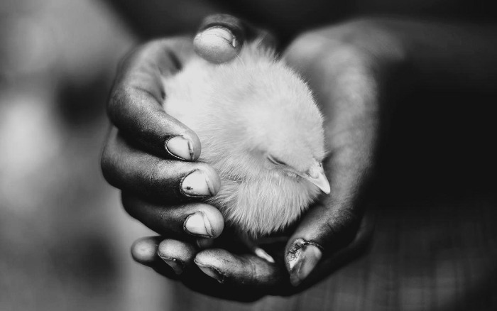 결국 손에 든 병아리,
