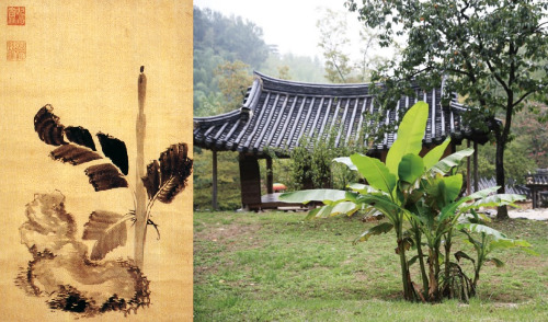 파초는 바나나 비슷한 식물입니다. 예로부터 문인들이 사랑한 식물입니다. 왼쪽의 파초 그림은 다름아닌 정조의 그림입니다. 이 시에서 시인은 ‘파초’와 멀리 떨어진 곳에서 앓고 있습니다. 그러나 어느 순간, ‘파초’는 마치 옛 연인처럼 찾아와 시인을 위로하고 있습니다. 그러나 이 위안의 순간도 ‘새벽’이 오기 전까지의 일입니다. 새벽이 오자, ‘파초’는 ‘무지개’ 다리로 길을 떠납니다. 한낮, 아니 아침만 되어도 영영 사라져 버릴 ‘무지개’. 그래서인지 ‘파초’도 시인과의 이별이 아쉬운지, ‘무지개’를 건너가지 못하고, ‘무지개’를 밟고 있는 그 모습으로 시인과 헤어지는군요.