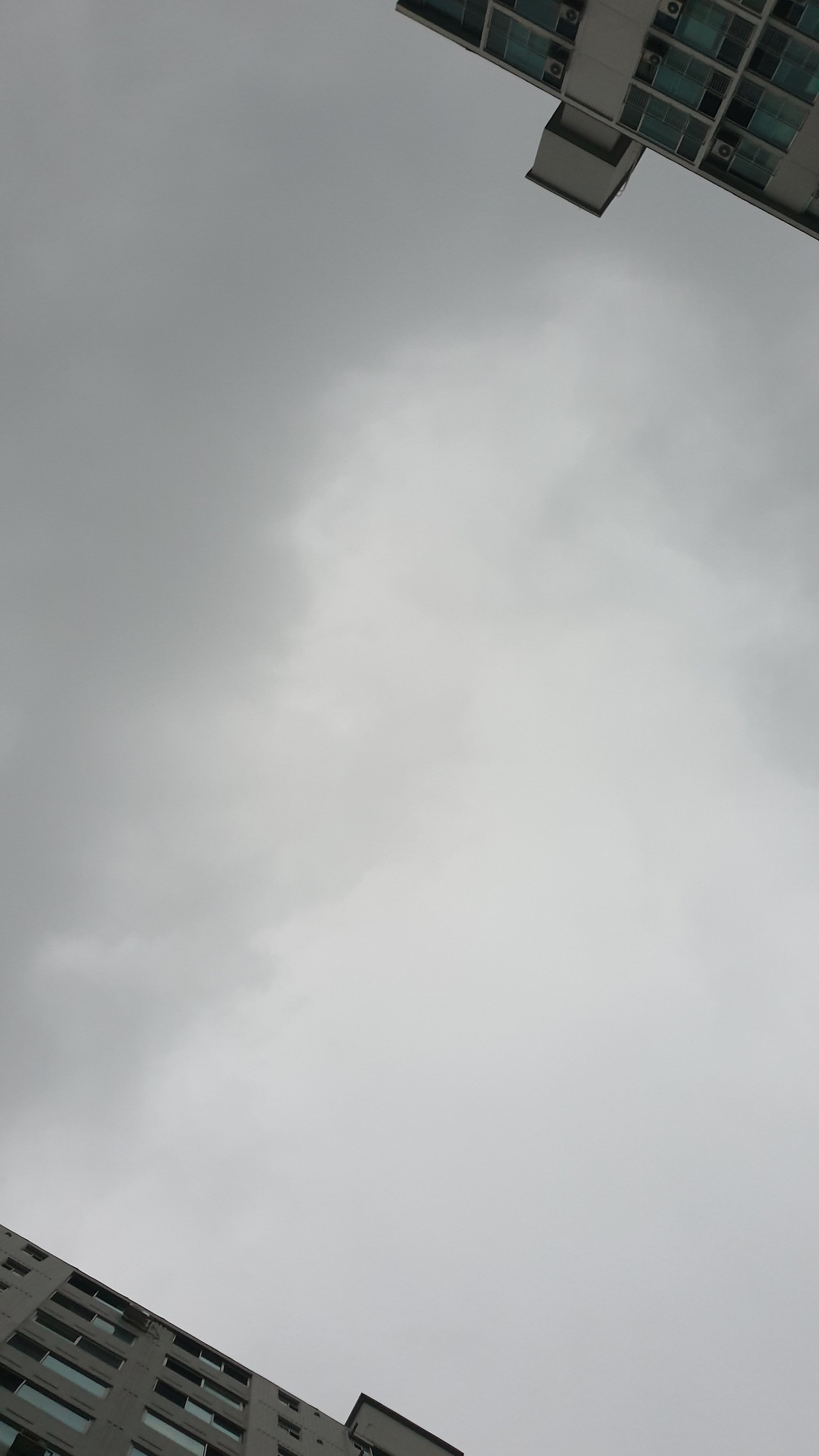 아파트 사이로 보이는 하늘은 희뿌옇다. 다시 눈을 감는다. 회색 하늘이 다시 보고 싶어 눈을 뜬다. 하늘이 보인다. 내 피부에 닿는 물방울이 저기서 오는 거라는 생각이 스쳐간다. 저렇게 멀리서 만들어지고, 출발해서 내 피부에 닿는구나. 그리고 난 그걸 느끼고 있구나. 바로 지금 여기. 지금 여기서.
