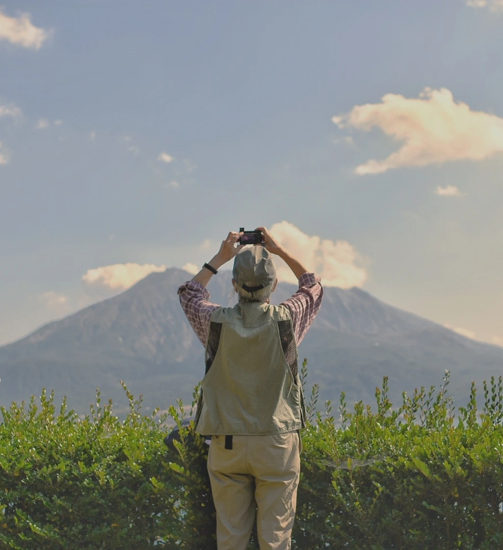 그때 한 할아버지가 내 시야의 정중앙으로 들어왔다. 나는 사쿠라지마가 가장 잘 보이는 곳에 앉아 있었기 때문에, 딱 그 위치에 서서 사진 찍는 그를 보고 생각했다. ‘사진 찍을 줄 아는군.’