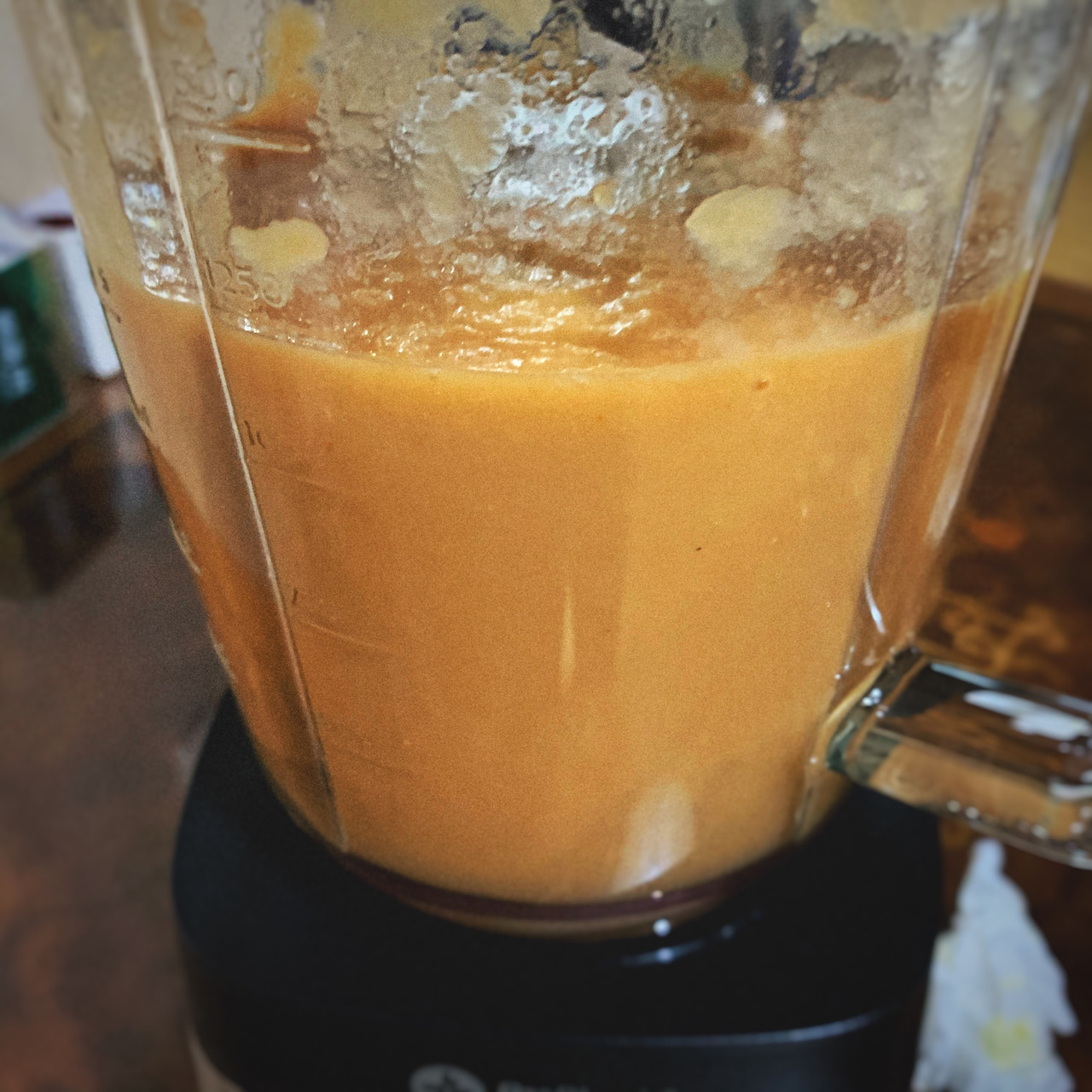첫 번째 음료는 사실 처음에 먹었다가 맛이 밍숭맹숭해서 황급히 오렌지를 추가했다. 그래도 생각보다 양배추 맛이 강하게 나진 않았고 바나나와 당근의 맛이 전체의 조화를 잡아주는듯 했다. 맨 처음 시도한 거라, 기왕이면 일단 제대로 다 해보자라는 생각에서 삶을 것 다 삶고 1시간 동안 진땀 흘리면서 만들었다. 사실 굳이 채소들을 삶아야 할 필요가 있을까 싶어서, 다음 번엔 일의 효율을 추구하고자 전부 생으로 갈아먹기로. 어차피 우리 블렌더 성능이 매우 좋거든. 아주 곱게 갈아낼 자신 있거든.