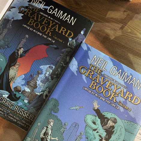 매일 주체적 소설 읽기 프로젝트를 시작한지 이주일 째, 두 번째 소설책을 끝마쳤다. 엄밀히 말하면 그래픽노블 책이지만! 그래도 내용만큼은 알차다. 대사 하나하나도 굉장히 많다. 역시나 친오빠 방에 있던 책들 중에 재밌어보여서 골라들었다. 책은 닐 게이먼의 장편소설을 그래픽노블로 각색한 것으로서, 총 두 권으로 되어있다. 1권은 주인공 노바디가 아기때부터 열살이 되기까지의 묘지에서의 성장기를 그려놨다면, 2장은 열살이 된 노바디가 세상에 관심을 갖게 되고 악들과 대결구도를 형성하는 내용을 담아냈다.