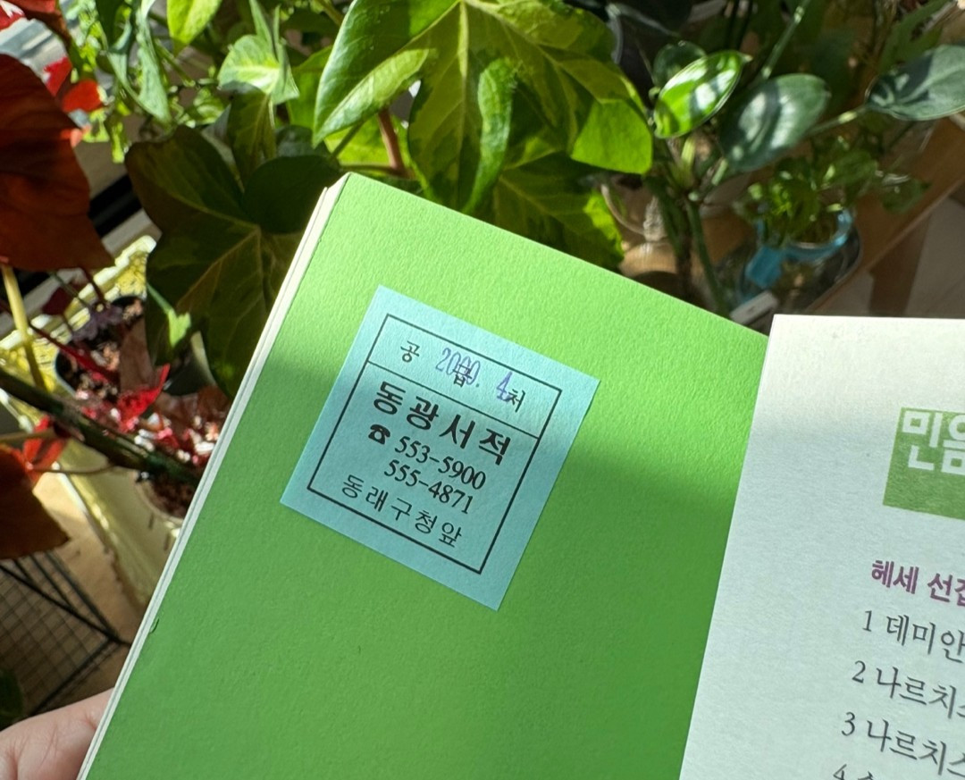 새해 첫날, 아직 어두운 이른 아침에 눈이 떠졌다. 방으로 들어가 책장 앞에 서서 올해의 첫 책을 골랐다. 시작을 함께할 만한 의미심장한 제목들 사이에서 꼬질꼬질 오래된 책 한 권이 눈에 들어온다. 헤르만 헤세의 『나무들』 너로 정했다! 맨 뒷장 기표에는 어린 시절 할머니 댁 근처에 있었던 서점 이름이 쓰여있다. 아마도 없어진 지 한참 되었을 것이다. 그때부터 지금까지, 시기마다 이 책은 어떤 이야기를 들려주었을까.