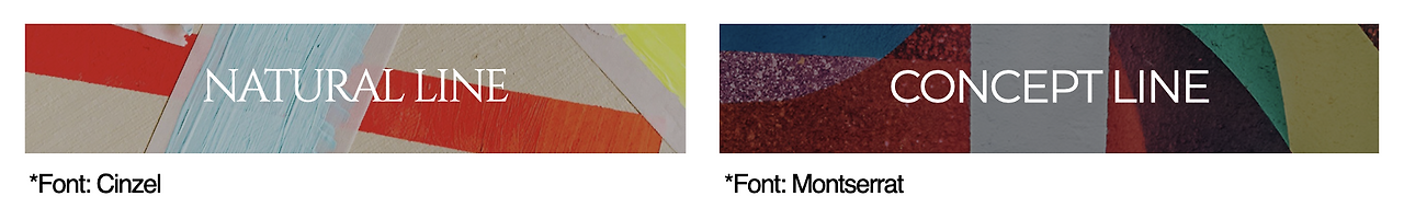 수많은 폰트들을 비교해보고 컨셉 이미지에 적용해본 결과 내추럴 라인에는 Cinzel, 콘셉트 라인에는 Montserrat 폰트를 적용하는 것으로 결정 했습니다. 앞서 이야기 했던 것 처럼 각각 고급스러움과 자유로움이 한 눈에 보여질 수 있는 폰트로 선정했습니다.