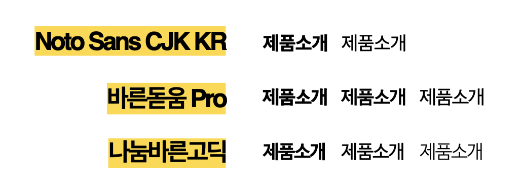 한글 폰트 : Apple 산돌고딕 / Noto Sans / 산돌 제비 / 산돌 네오고딕 / 바른돋움 Pro / 나눔바른고딕