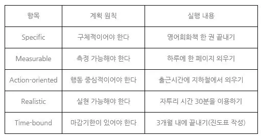 ‘계획을 세워도 작심삼일이라면, 3일에 1번씩 계획을 세우세요. 계획이 제대로 실행되지 못한다면 계획을 수정하면 됩니다. 몇 차례 수정하다 보면 실천이 잘 안 되는 원인이 무엇인지 알게 되고 나에게 맞는 현실적인 계획을 세울 수 있습니다.