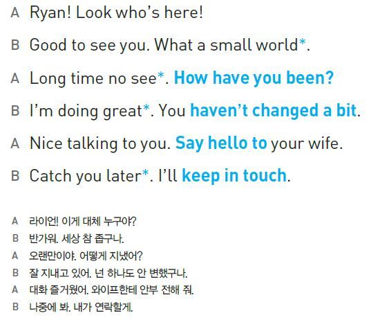 예상치 못한 장소에서 친한 사람을 만났을 때 사용하는 말입니다.