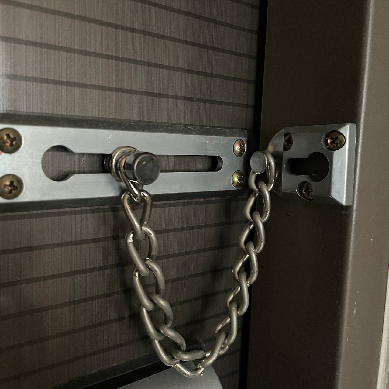 오피스텔 현관문에 잠금장치가 없어서 집주인의 허락을 받고 3만 원짜리 잠금장치를 달았다.