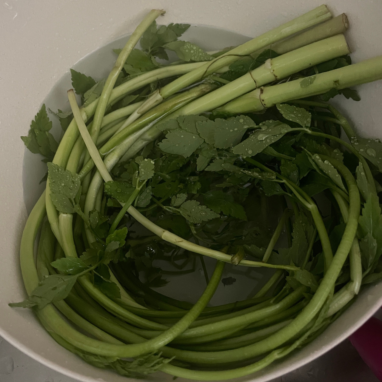 미나리가 더러운 건 알고 있었는데, 이렇게 더러운 줄은 몰랐다. 씻어도 씻어도 잔잔한 뭔가가 계속 나와서 이거 뭔가 잘못된 줄 알았다. 7번을 씻었는데 생각만큼 깨끗하진 않았다. 손이 시릴 정도였다.
