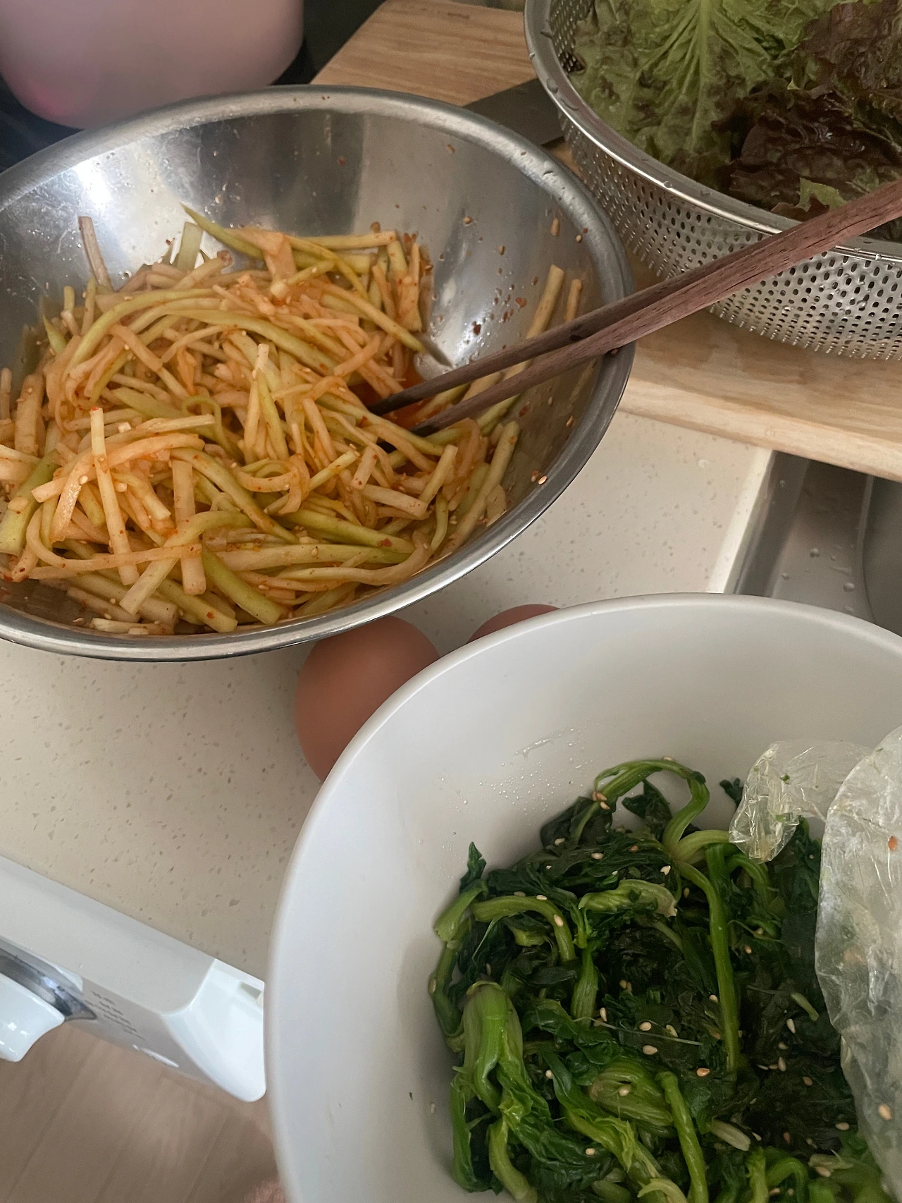 전부 다 내 손으로는 처음 사보는 것들이었다. 태어나 처음 사보고, 씻고, 다듬고, 데치고, 무쳐봤다.