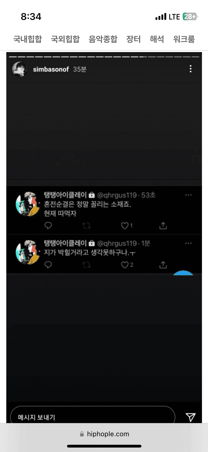 새벽까지 잠도 못 자고 힙갤고고학 게시물을 전부 다 읽었다. 손심바 같은 인간을 지나치게 별종으로 보는 점만 제외한다면, 내가 디시에서 읽은 글 중에 제법 학구적인 글에 속하는 것 같다. 적어도 내 석사 1학기에 냈던 학회 논문보다는 나은 것 같다. 특히 그들의 대단한 점은 손심바의 SNS 기록 역시 분석하여 그가 같이 무대에 서고 같이 앨범을 작업하던 친구들에게 뒤에서는 어떤 태도를 보였는지 기술하고 있다는 점이다. 이런 인간들은 사실 우리 주변에 제법 있는 편이다. 본인 어려웠던 시절 내민 손은 기억 못 하고 호시탐탐 뒤통수를 치려는 개새끼들. 거짓말이 탄로 나면 순간의 잘못된 판단이었네, 이야기할 타이밍을 못 잡았네 어쩌네 한다. 개새끼들 잡아먹는 야차로 태어난 넉살이 부럽다는 생각을 했다. 손심바 같은 개새끼들.