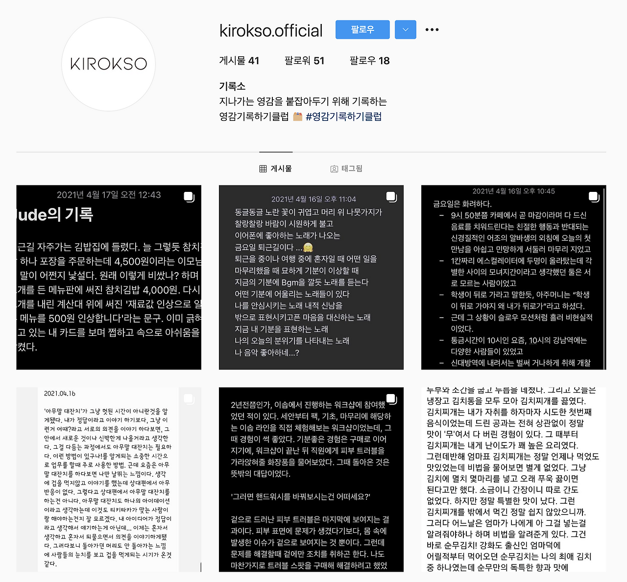 취향이 좋은 인플루언서 계정보다 취향이 좋더라도 홍보성 콘텐츠를 올릴 수밖에 없는 브랜드 계정은 팔로워를 얻기 더 힘들다고 생각한다.