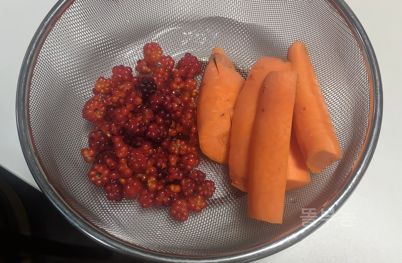 우리 집 후식은 멍석딸기와 월동 당근.