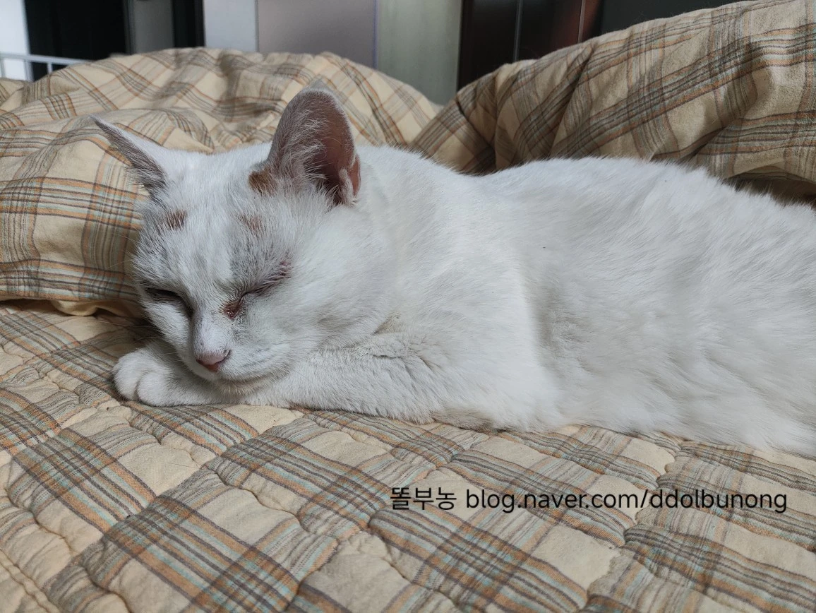 16살이 된 흰둥이, 내 첫 고양이. 큰 병 없이 살다가 훅 가기를 바라는 것이 서로를 위한 나의 바람.