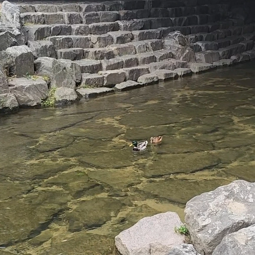물의 흐름을 따라 유유자적 흘러 내려온다. 내려간다.