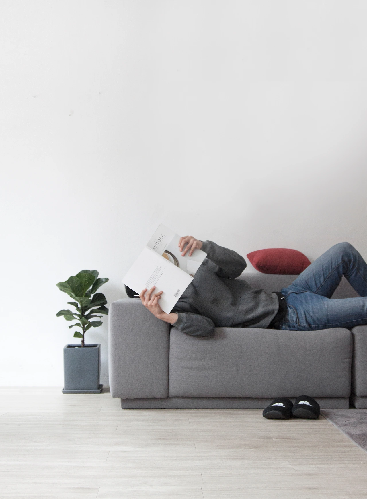 그래서 제가 직접 누웠습니다. 카메라 타이머를 맞춰놓고 후다닥 달려가 소파 위에 벌러덩 누운 채 셔터가 눌리길 기다렸죠. 네, 맞습니다. M5 소파 상세 페이지 속, 얼굴을 잡지로 가린 채 세상 편하게 누워있는 그 ‘어설픈 모델’이 바로 접니다. :)