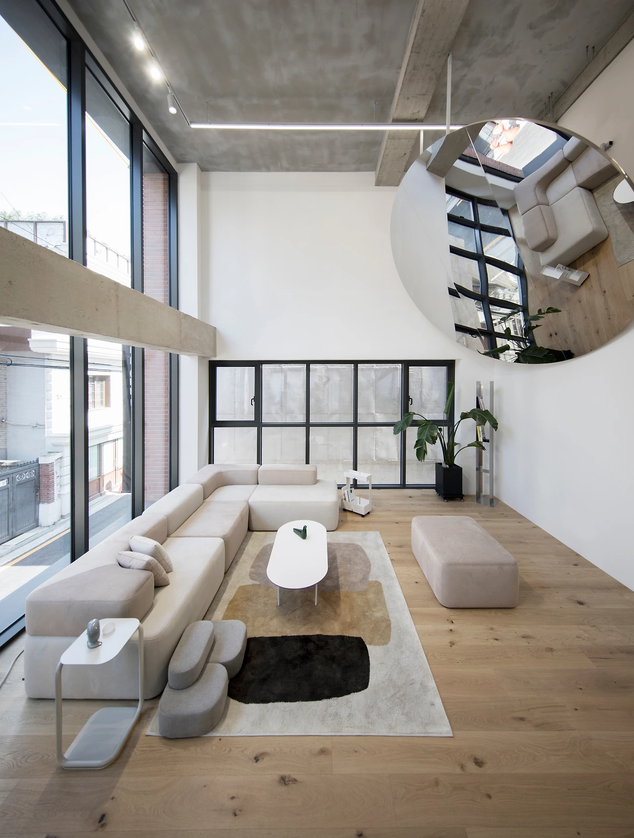 이곳은 일반적인 가구 쇼룸의 문법을 완전히 거스르는 공간입니다. 보통 가구점은 드넓은 단층을 선호합니다. 그래야 관리하기 편하고, 고객 동선을 통제해 세일즈하기 좋으니까요.