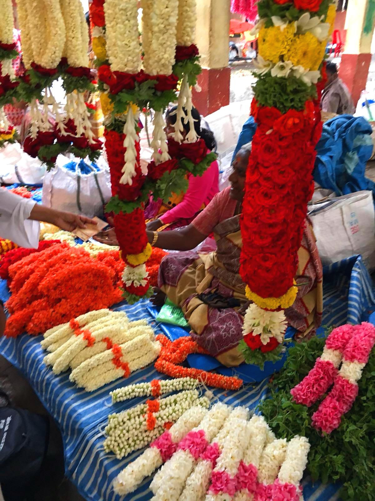 꽃들 만큼 화려한 색깔의 사리와 쿠르따를 입은 사람들은 이러한 꽃들 속에서 재잘거리고, 꽃향기를 맡고,