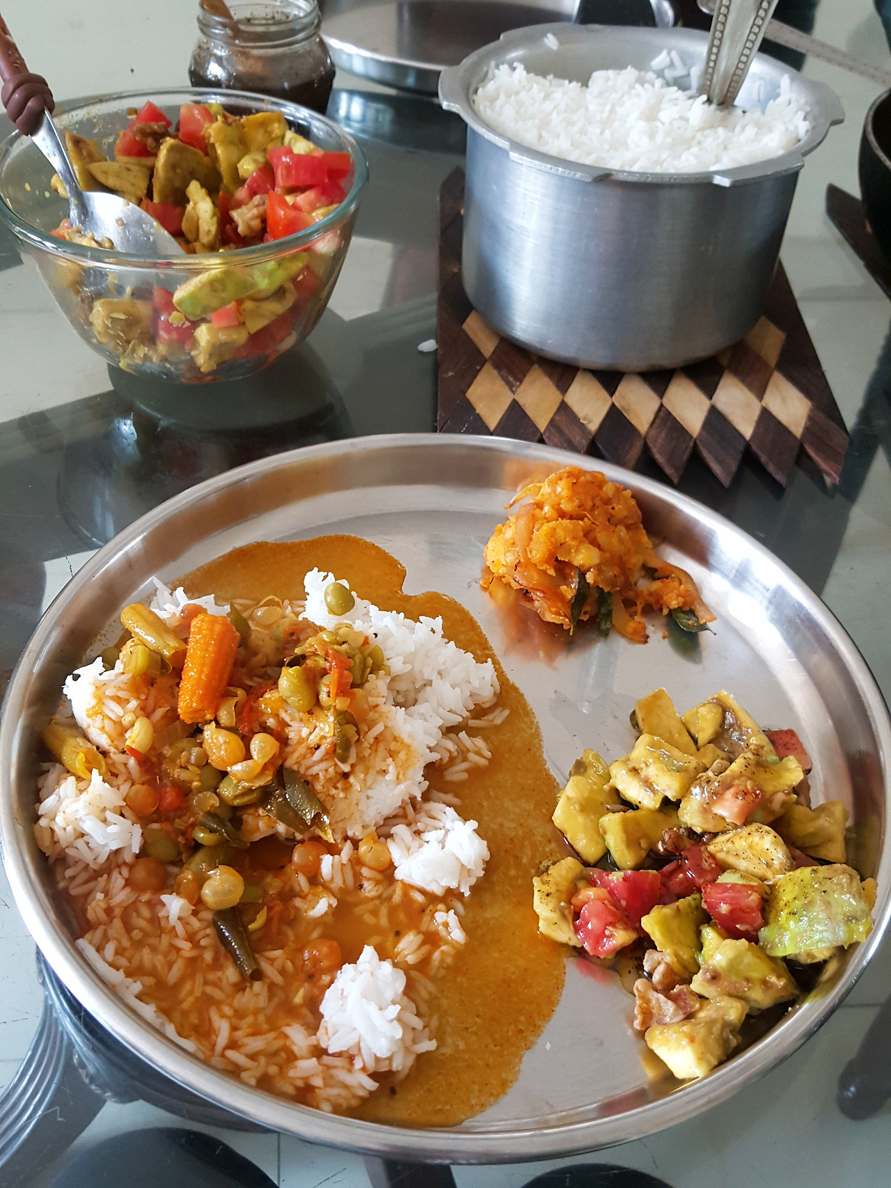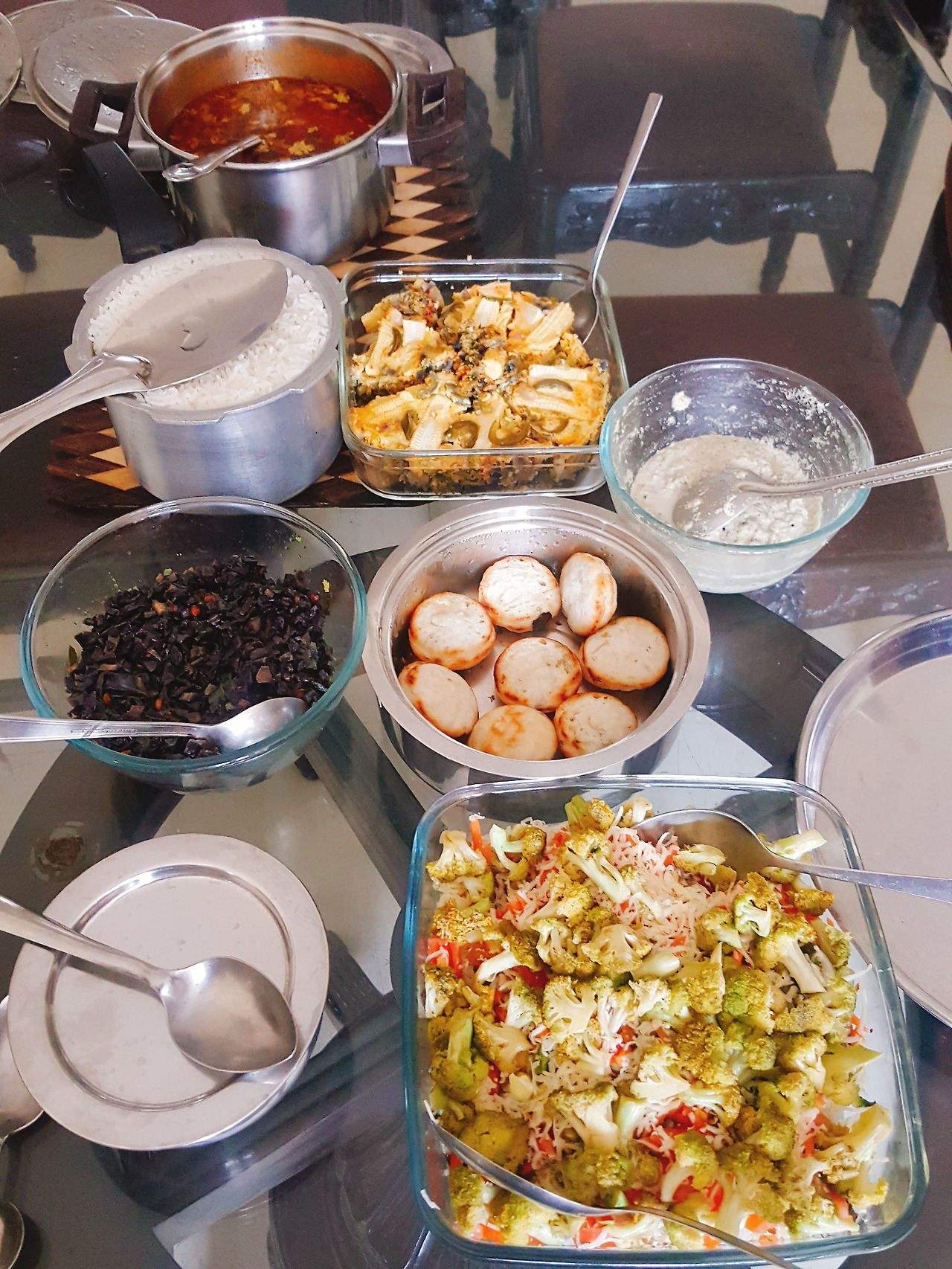 친구의 가족은 케렐라주에서 온 말레얄리(Malayali)이고, 디디는 카나타카주에서 온 칸나디가(Kannadiga)로 아침보다 좀 더 풍성한 점심의 식탁은 두 지역의 레시피, 남인도의 맛으로 가득 찬다.