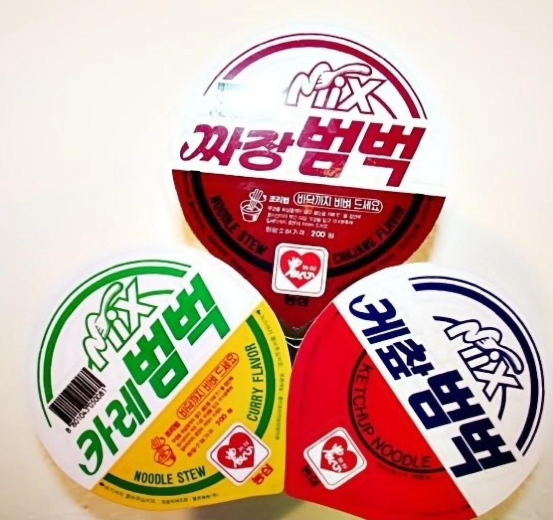 지금은 '짜파게티범벅'이란 이름으로 한 종류만 판매되지만 시작은 삼총사였다. 짜장범벅, 카레범벅, 케첩범벅. 요 작은 녀석들이 출시될 때 처음엔 좀 의아했는데, 한 끼 대용인 라면치고는 너무 작고 맛 또한 기존과는 확연히 달라서였다. 컵라면에 형태를 띠고 있었으나 앙증맞은 면발에 수프가 뿌려진 마치 과자 같은 라면이었다. 그래선지 학교 앞 문방구에서 많이 팔려나갔는데, 유독 바스락거리는 식감에 짭조름한 맛이 있어 일부러끓여 먹지 않고 씹어먹었던 기억이 난다.