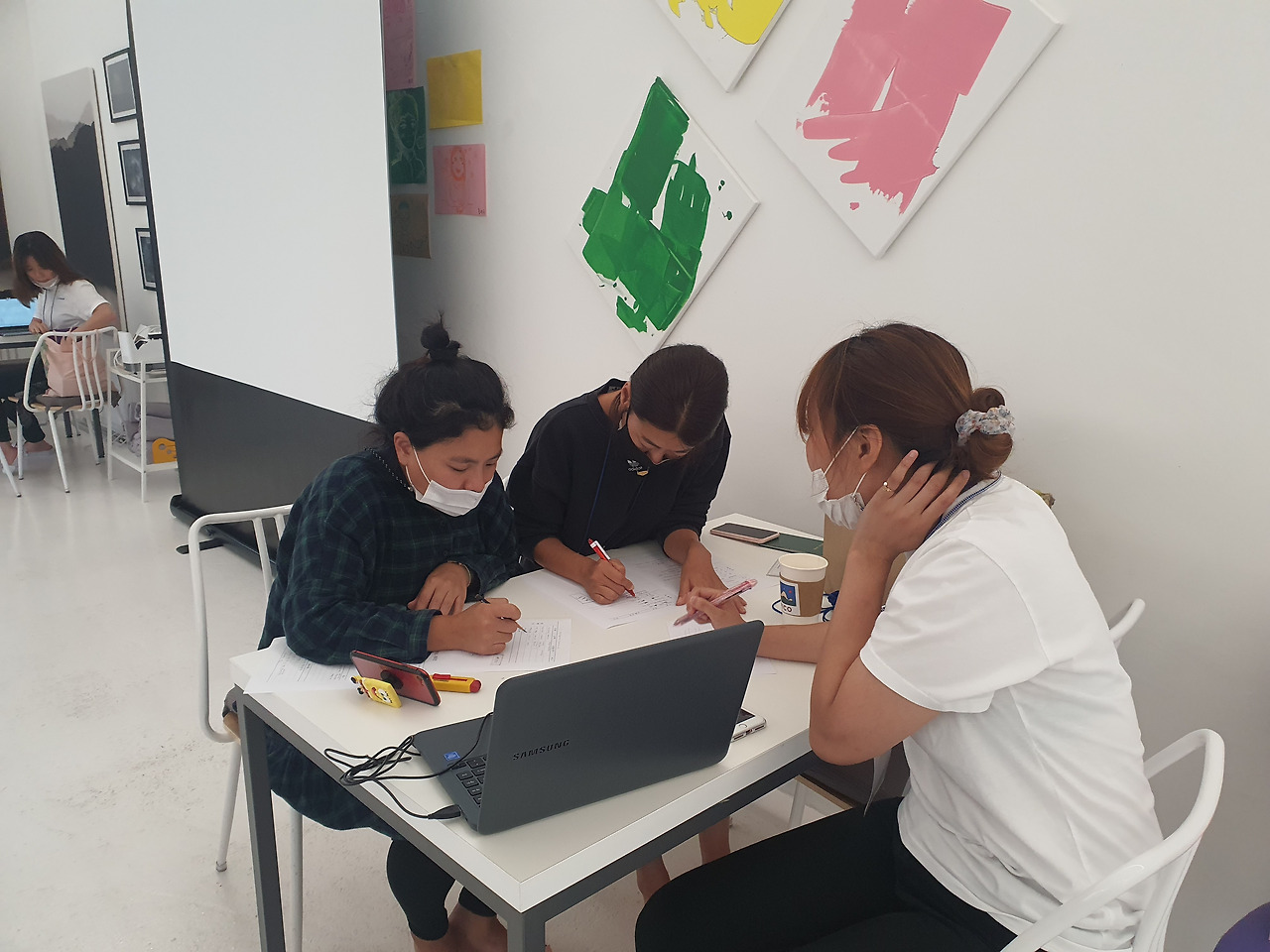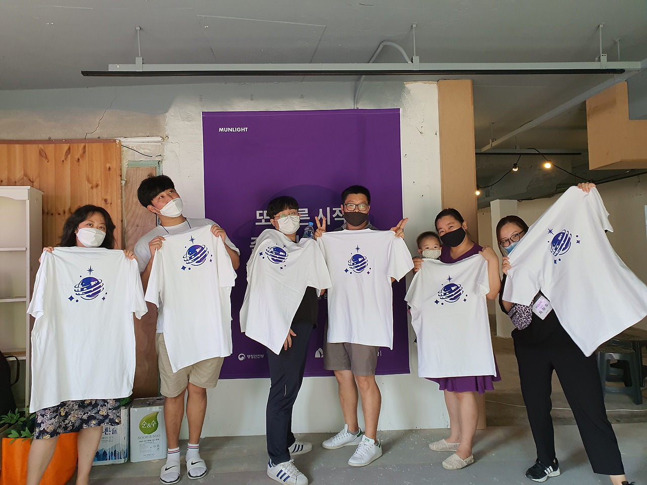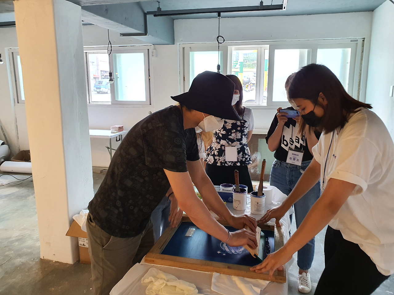 오리엔테이션 행사가 끝난 후 탐사대원님들은 3조로 나뉘어 앞으로 활동할 곳을 둘러보셨는데요. 웰컴 키트 중 하나인 <달빛탐사대> 티셔츠에 실크스크린으로 직접 로고를 새기고, 입주할 숙소들을 둘러보고, 마을에서 차로 5분여 정도 떨어진 곳에 새로 조성된 알록달록한 컨테이너 공간을 돌아봤습니다.