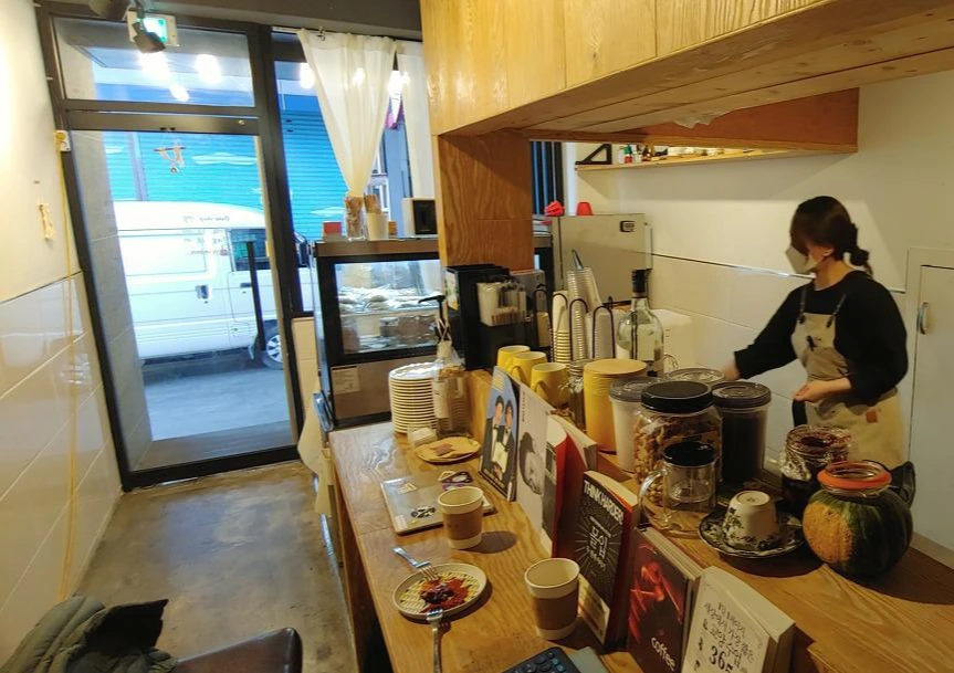 오픈식이 있기 이틀 전, 저 콘샐러드가 미리 가오픈 기간의 청년몰 베이크샵 연분을 찾아갔습니다. 마치 심야식당이나 일식집 카운터석을 연상하게 만드는 긴 바 테이블에 앉으니 우리의 연분사장님, 따듯한 블랙커피 한 잔을 내어주시네요. 감사한 마음으로 한 두 모금 홀짝이며 오픈식을 앞둔 연분사장님의 인터뷰를 시작했습니다.