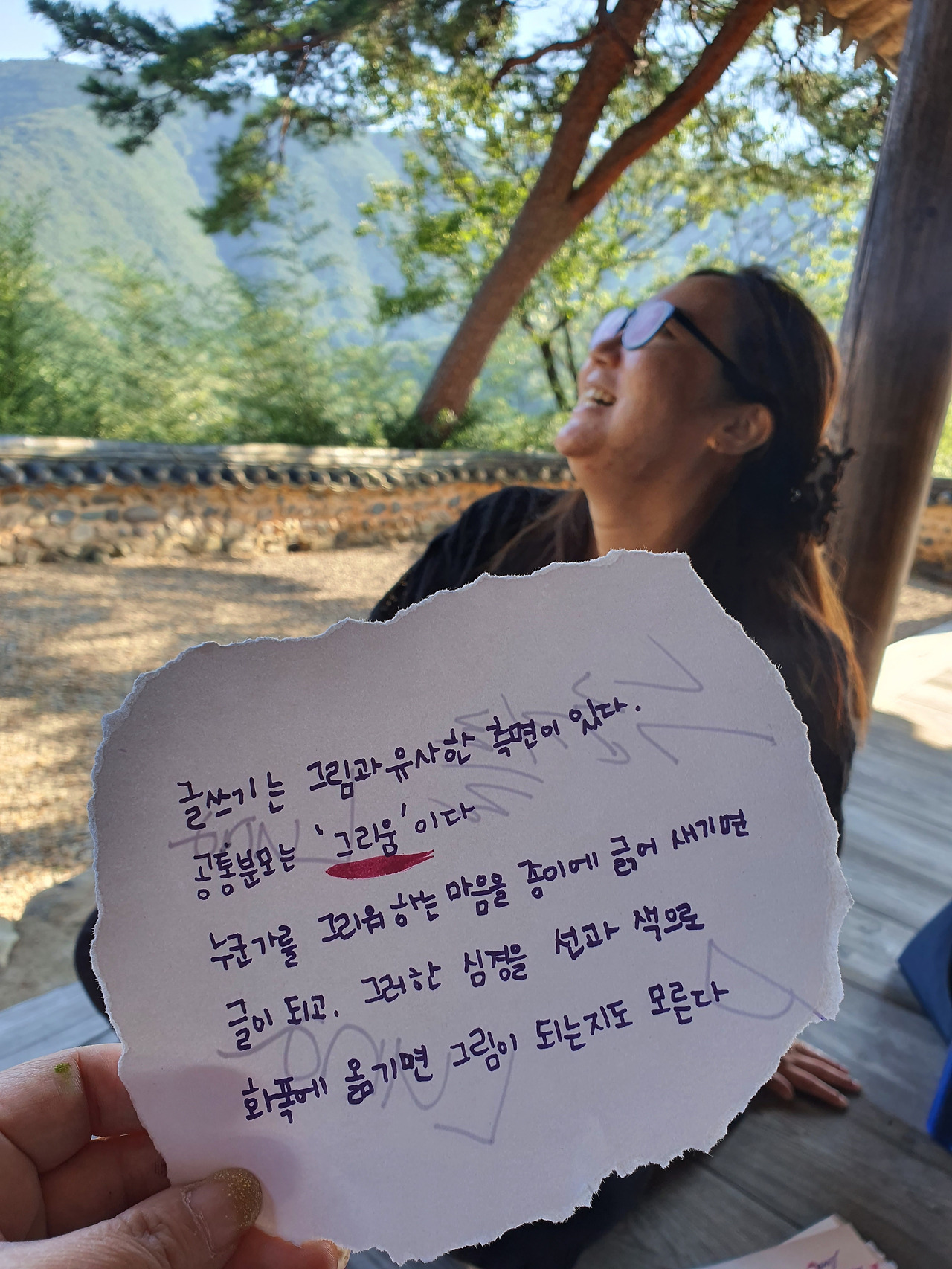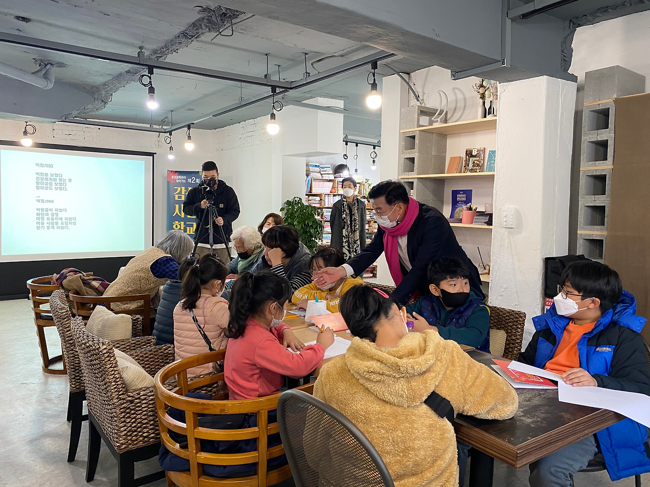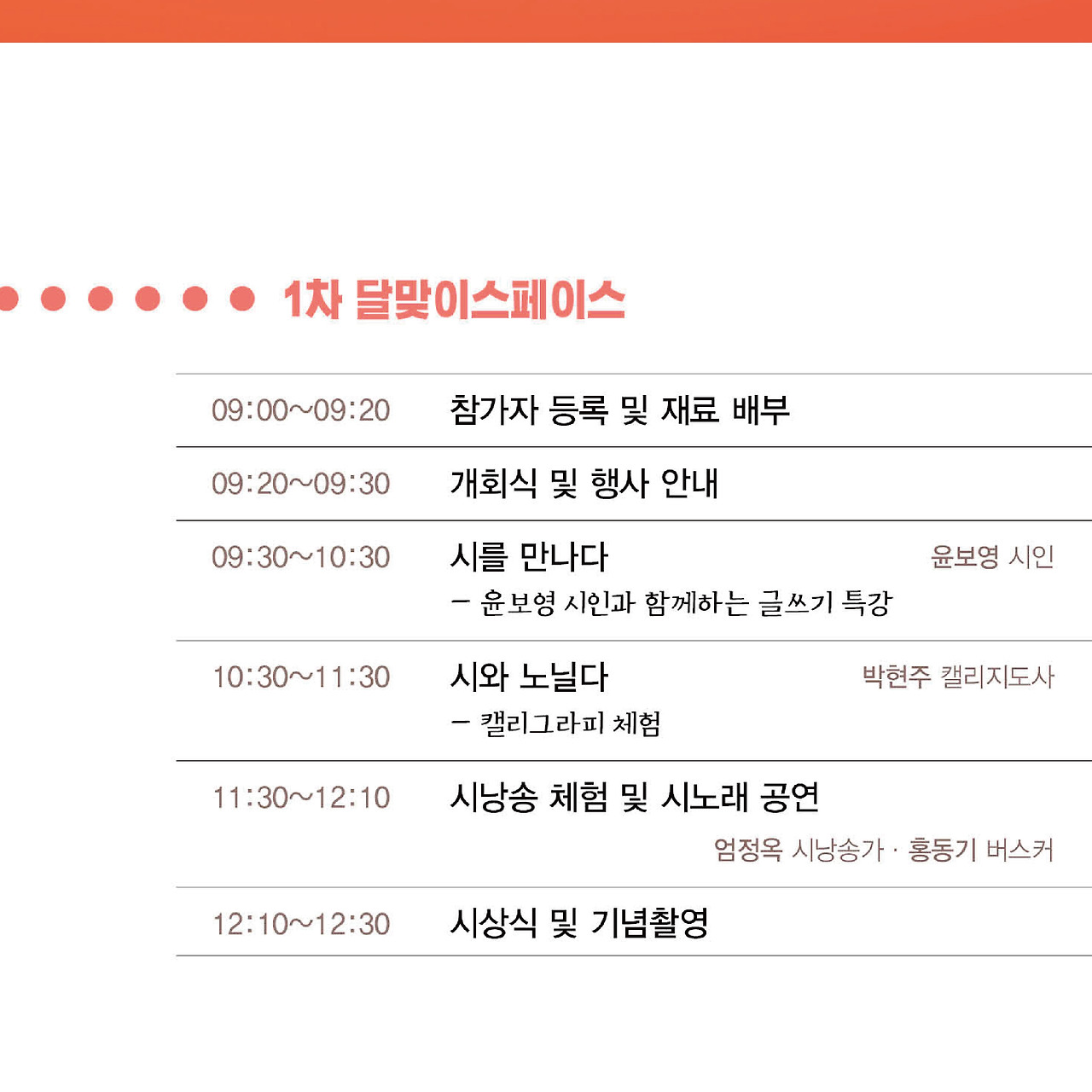 11월 7일 토요일 오전에 달맞이 스페이스에서 문경 문학관이 찾아가는 제2회 감성 시인 학교 이벤트가 있었습니다. 시인 윤보영 님께 배우는 글쓰기 특강, 캘리그래피 체험, 시 낭송과 노래 공연까지. 달맞이 스페이스에서 탐사대원들의 활동뿐 아니라 외부 문화 행사까지 개최되는 일이 많아지는 것 같습니다. 앞으로도 주민들의 문화생활을 책임지는 뜻깊은 공간이 되었으면 좋겠어요.