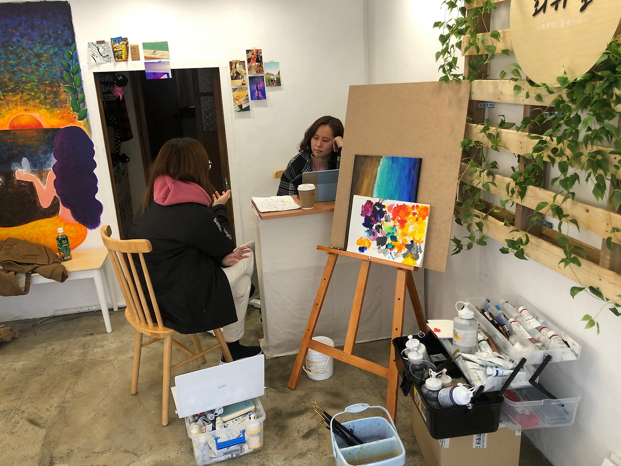 근 8년 만에 붓을 잡아 설레기도 하지만 한 편으로는 두렵기도 합니다. 웬만큼 나이가 들었다고 생각하니 다른 사람들보다 성숙한 결과물을 내야 할 것만 같습니다. 원하는 그림이 나오지 않을 땐 답답함을 느끼거나 그림 공부가 부족하다는 생각이 들기도 하고, 어떻게 이곳에서 생계를 해결할 건지 묻는 사람들의 질문에 난감하기도 합니다. 아직 답을 찾지 못했거든요.