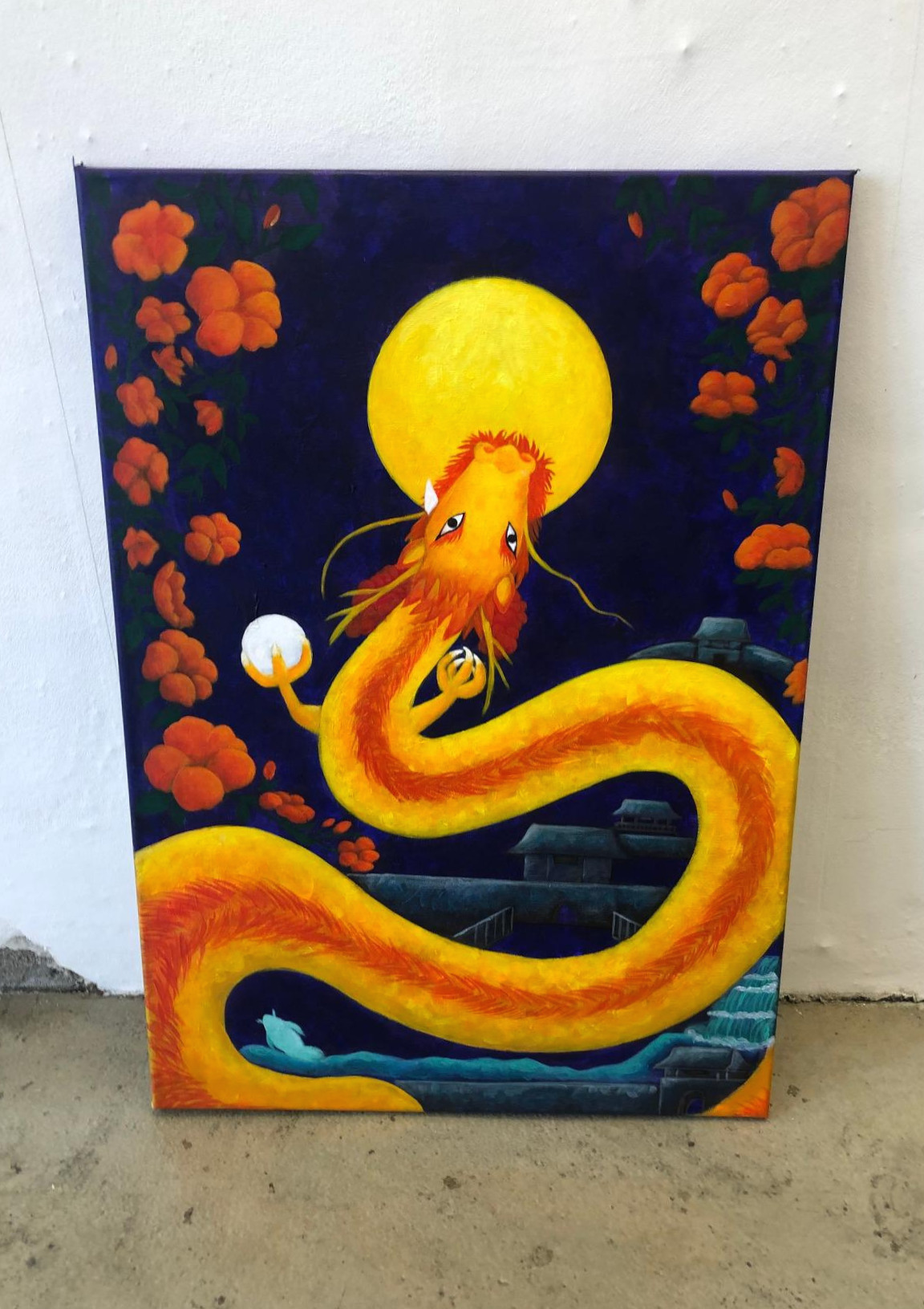 많은 분들을 받아 완성한 공간이기에 그림을 그릴 때도 그 고마움을 표현하려는 연꽃님. 가령 이 반달 코끼리 그림에는 <반달책방>의 보리님에게 느낀 고마움이 표현되어 있습니다. 보리님은 코끼리를 좋아하시거든요. 한편으로 <달 문 용>이라는 그림에는 문경에 대한 감사 마음을 담습니다. 그림에 그려진 능소화 꽃잎들은 양반들의 꽃이라고도 불리는데 장원급제할 때 능소화 꽂은 모자를 쓴답니다. (문경시 캐릭터인 출사동이는 장원 급제한 양반을 모티브로 한 캐릭터로, 능소화 꽂은 모자를 쓰고 있다)