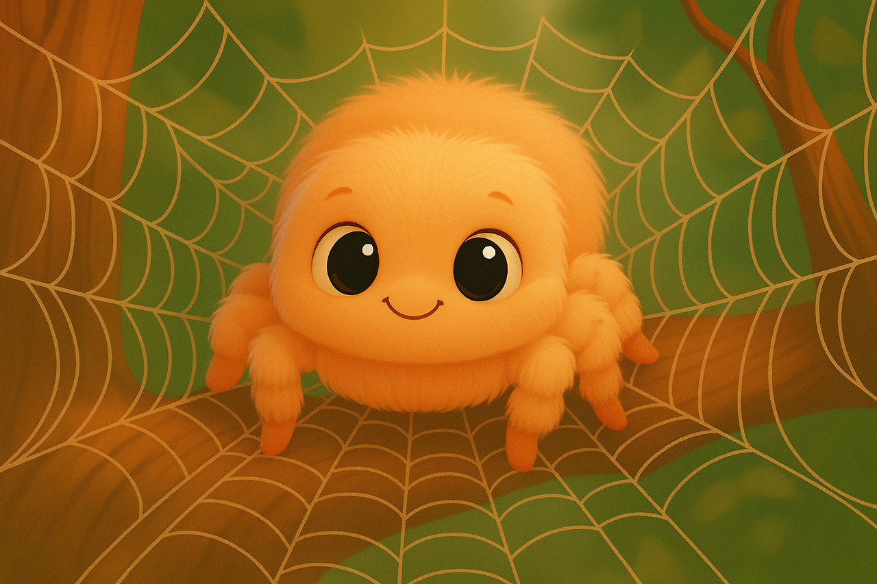 깊고 깊은 숲속, 아주아주 높은 나뭇가지 위에 플링이라는 이름의 귀여운 아기 거미가 살았어요.