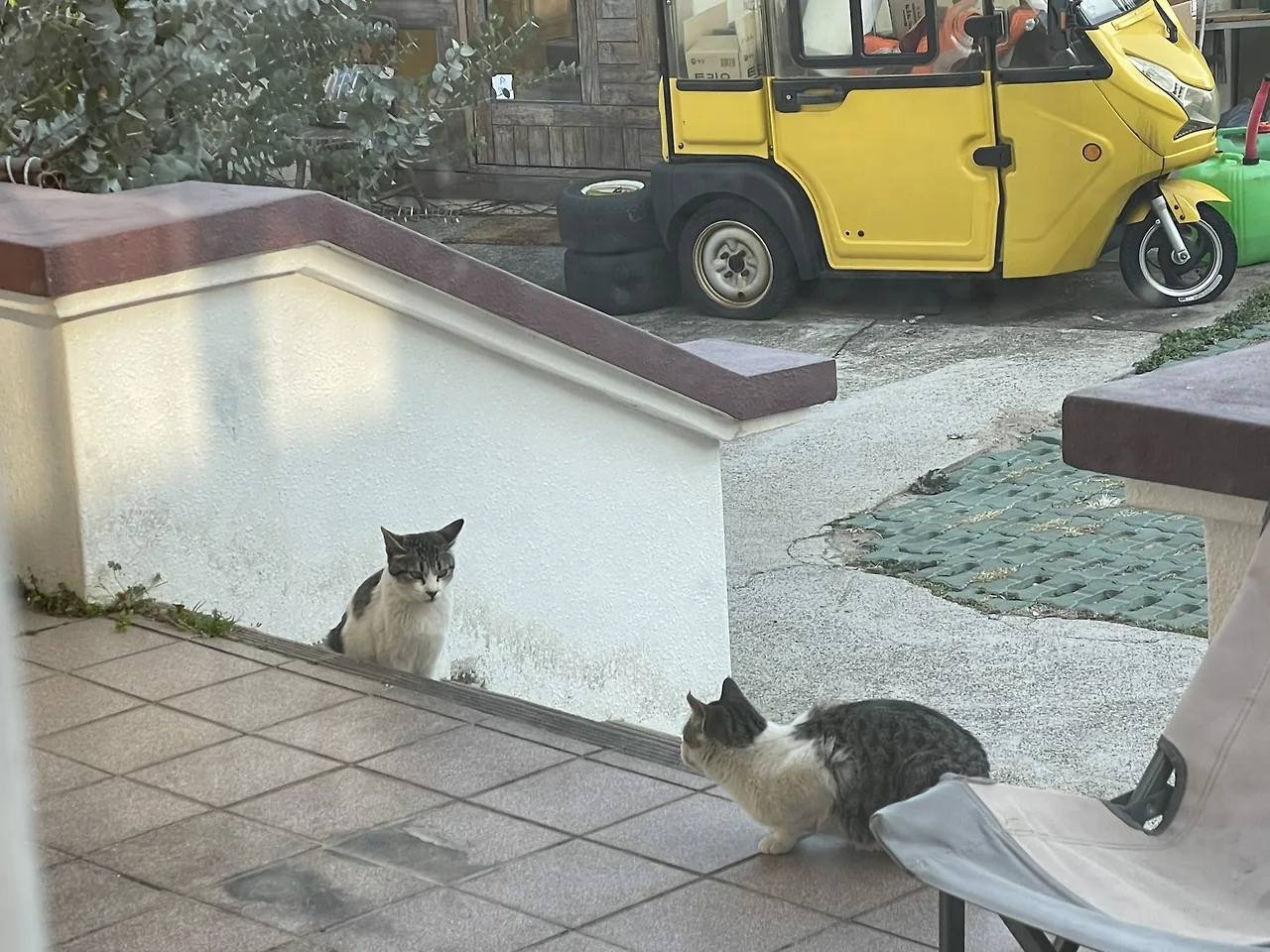 먹다보면 창밖으로 고양이들이 하나둘 모여든다!