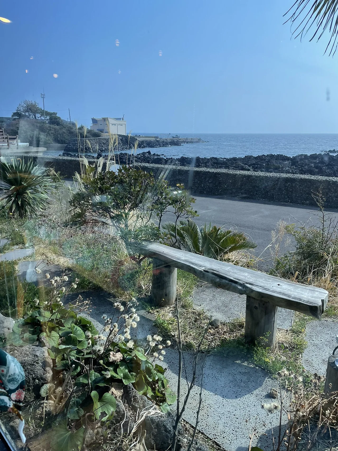 아무튼 여기는 바다뷰가 한 몫 하는 곳! 음료 메뉴 중에 커피도 있더라. 바로 앞은 차 대기 어려운 줄 알고 근처에 차 세우고 걸어갔는데 오히려 바다 풍경과 숨은 풀밭 풍경도 발견하고 좋았다.