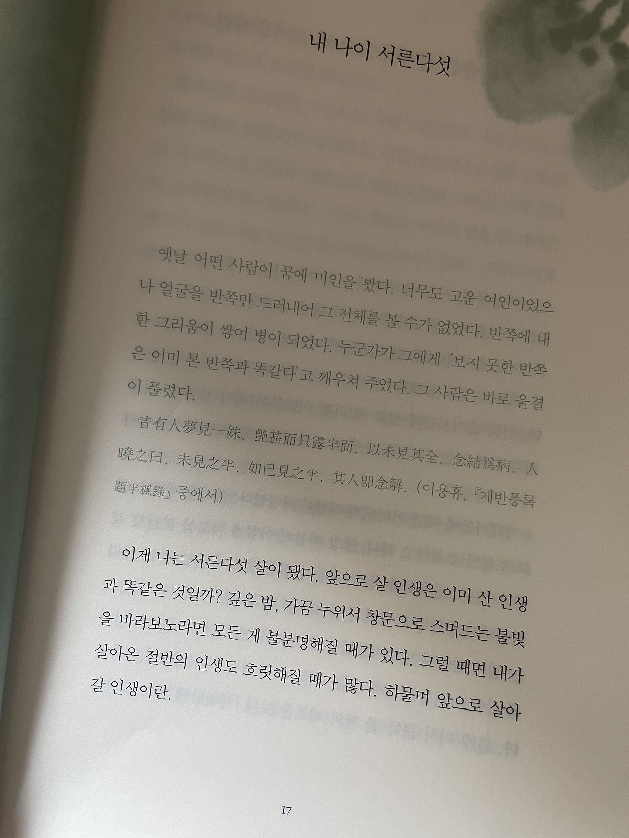 그런데 오랜만에 펼친 책 첫 마디는 ‘이제 나는 서른다섯이 됐다.’