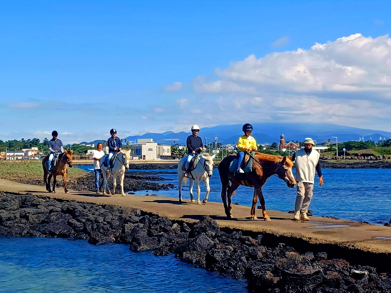 근처를 한 바퀴 도는 승마 체험객들도 좁은 시멘트 길로 해서 또가닥거리며 섬에 들어왔다.
