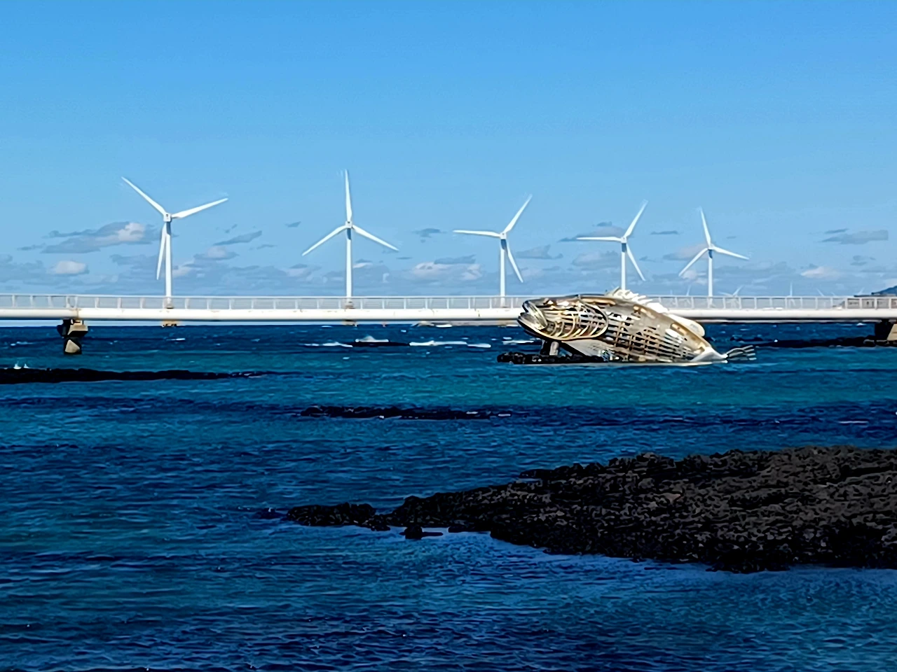 도중에 은빛 다금바리 조형물을 사진에 담는데도 몸은 비칠대, 조심조심 어렵사리 한 장 건졌다.