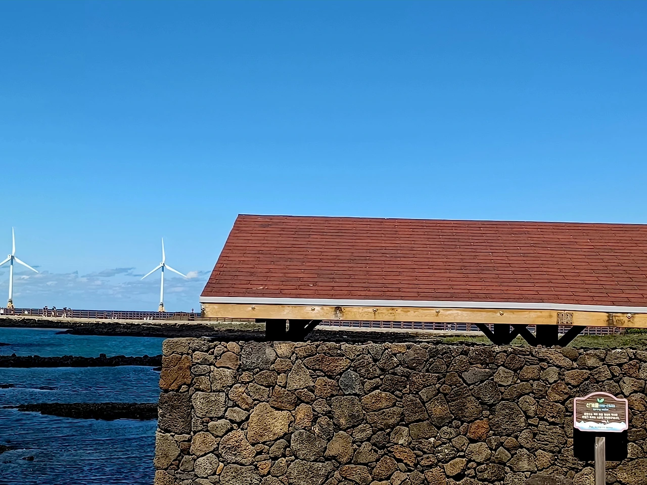 오른쪽 작은 섬에 불턱 같은 구조물이