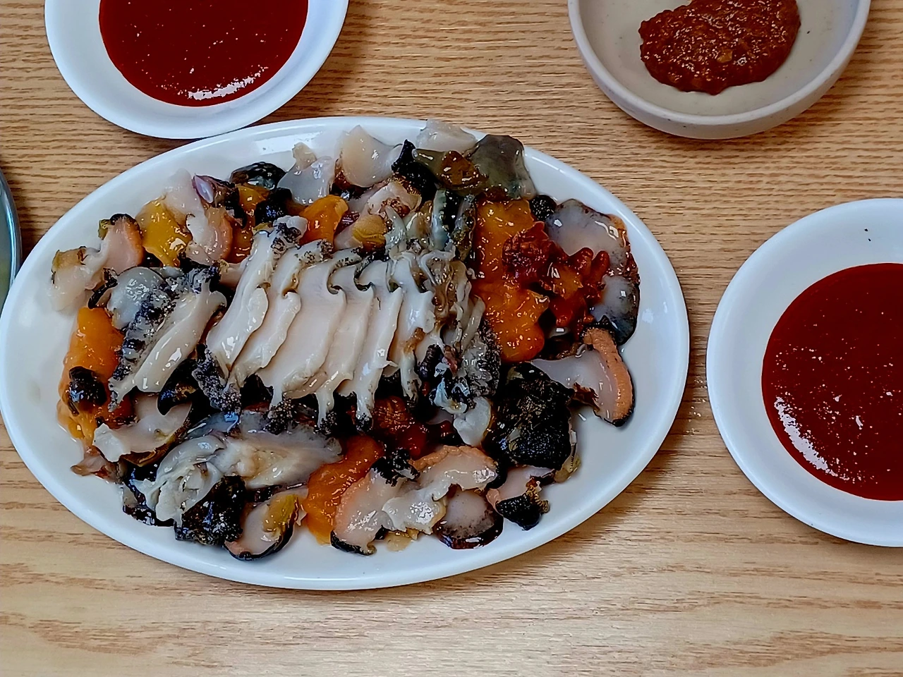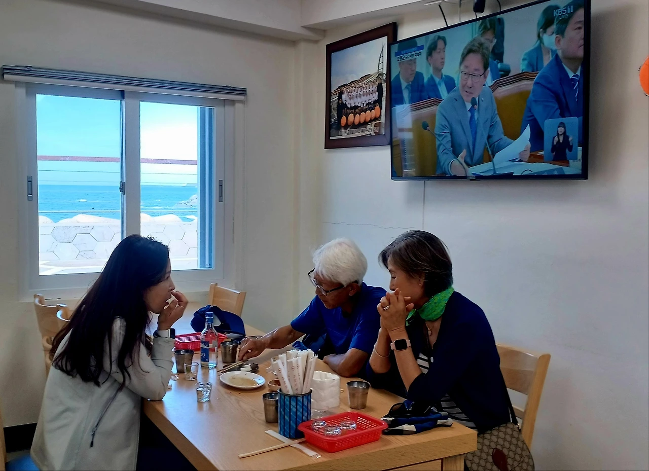 쇠소깍에서 강바람 쐰 다음 해물탕 소문난 소금막식당에서 전복뚝배기에 해물모둠탕으로 브런치 겸해서 식사를 마쳤다.