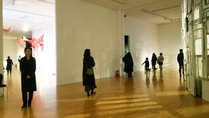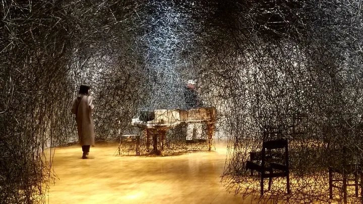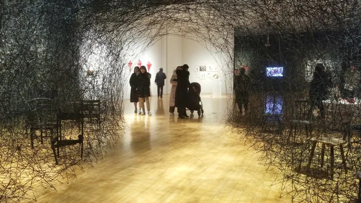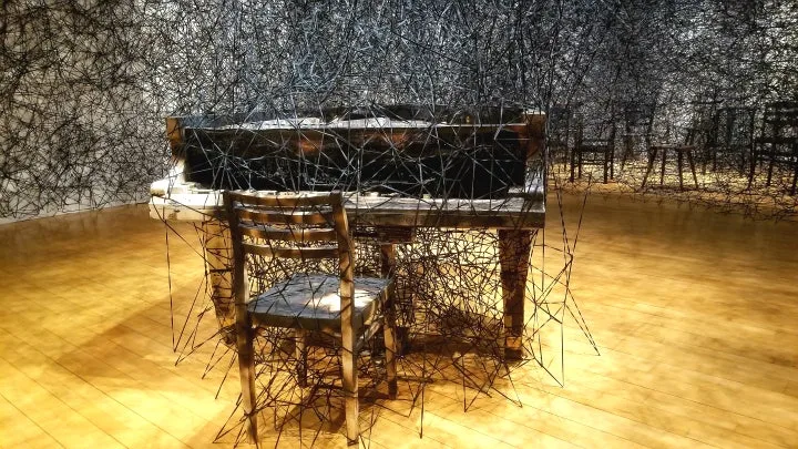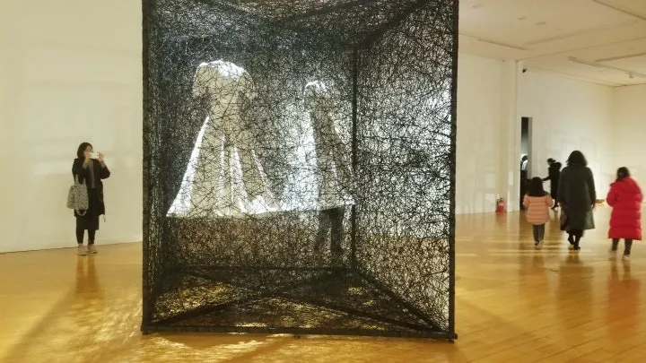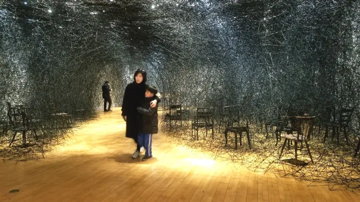부산 시립미술관 2층 대 전시실. 시오타 치하루( Shiota Chiharu) '영혼의 떨림' 전시회장이다. 현재 독일에서 활동하는 세계적인 설치미술가다.