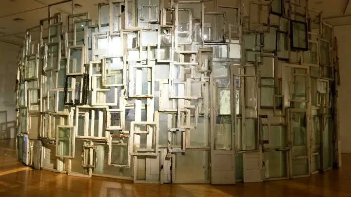 베를린 장벽이 무너진 뒤 생겨난 못 쓰는 창틀을 활용한 작품 <내부-외부>다. 28년간 단절된 채 살아온 동서독이 통독 과정에서 보여준 어려움을 대형 설치작업을 통해 독창적으로 표현했다. 같은 언어를 공유한 그들이나 서로 다른 삶을 살아온 자들의 너무나도 다른 인식 체제를 극복하기란 쉽지가 않을 테니.
