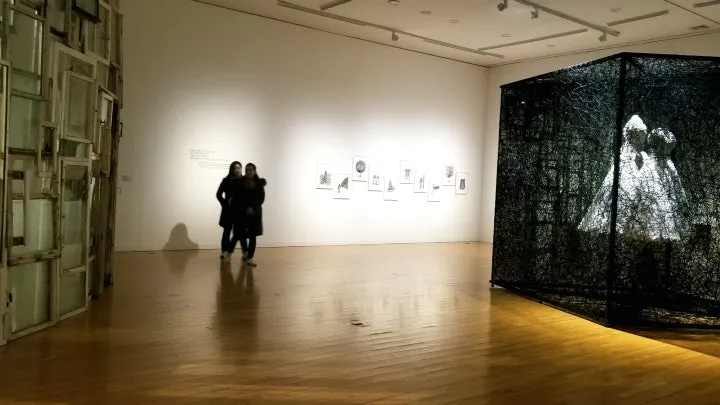 순백의 드레스를 거미줄처럼 감싼 검은 실을 통해 여성의 부재와 억압을 이야기한 <공간과 시간의 반영>이란 작품이다. 자신에 슬쩍 대입시켜 보는 여성 관객의 표정이 복잡 미묘해진다. 페미니즘이 기승부리는듯해도 말이다.