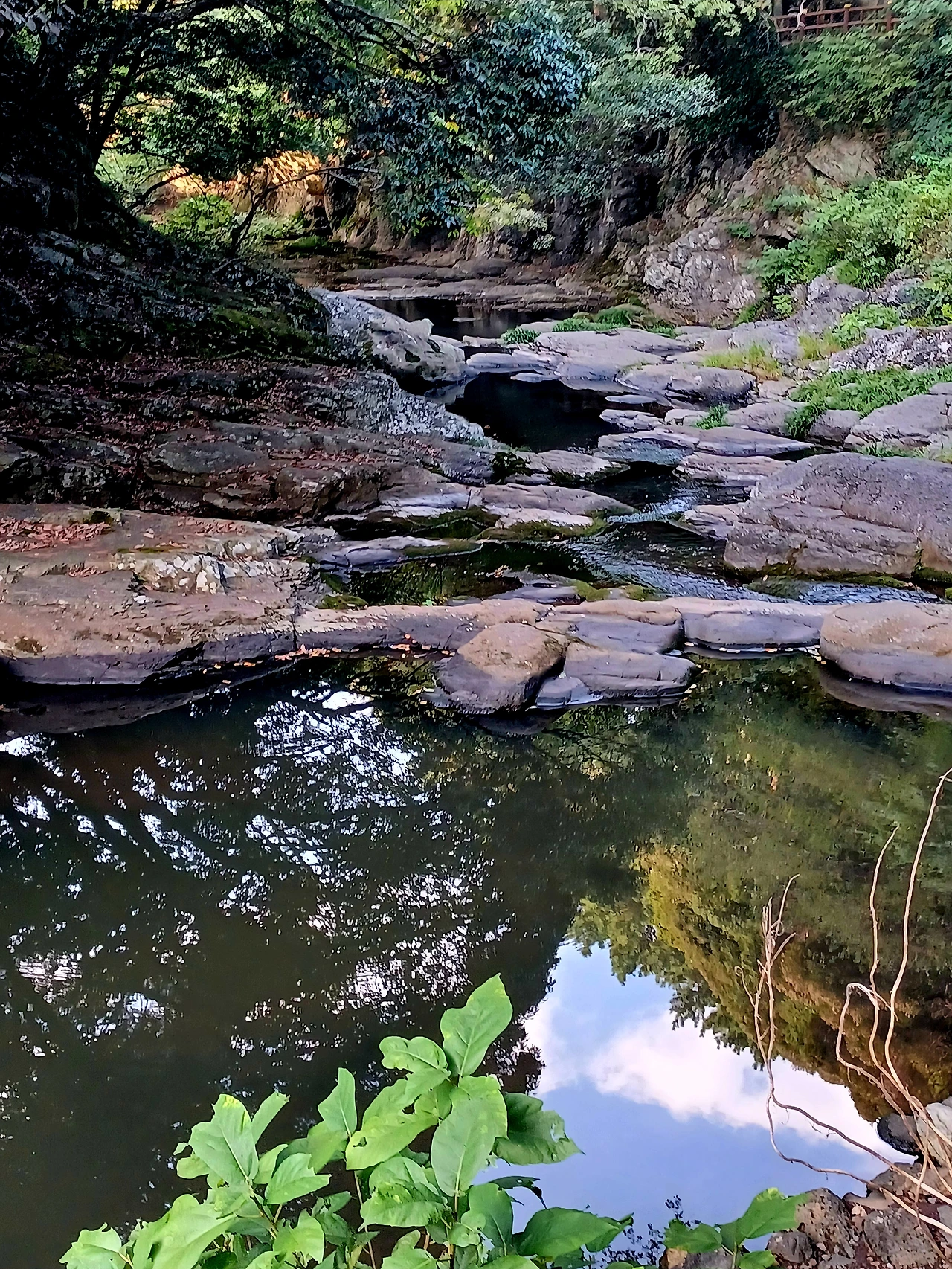 깎아지른 기암절벽 그 아래 암반 사이로 유유히 흐르는 맑은 물길 운치롭고 아름다운 계곡이다.