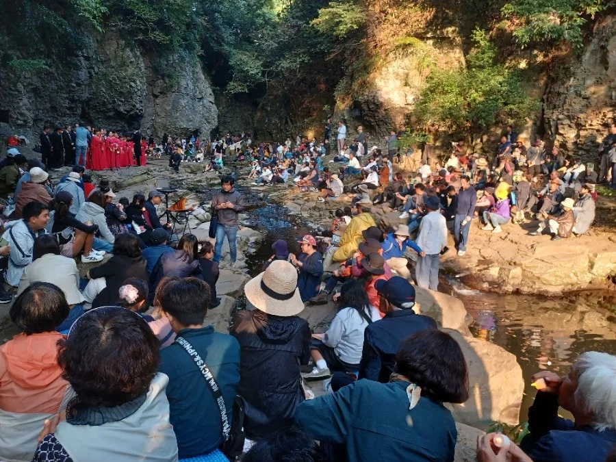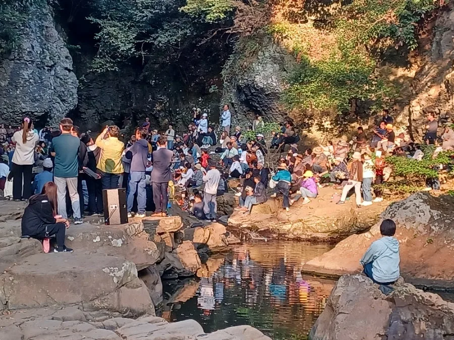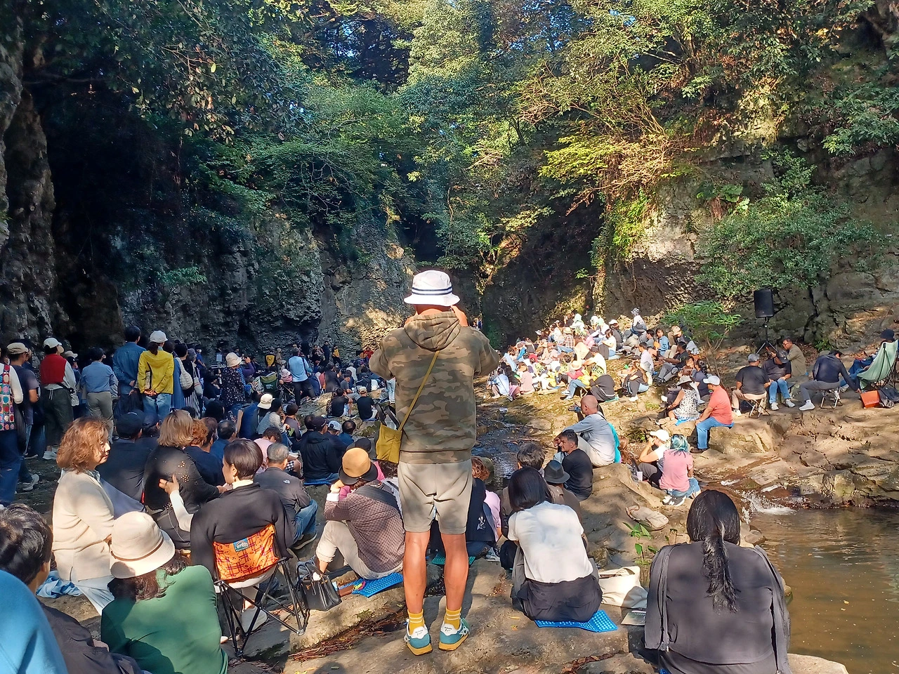 테너 박기천, 소프라노 최세정 등 성악가의 힘차고도 청아한 목소리는 계곡이 동굴이듯 바위벽에 부딪치며 울림통 역할을 해서 한층 경이로웠다.