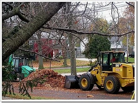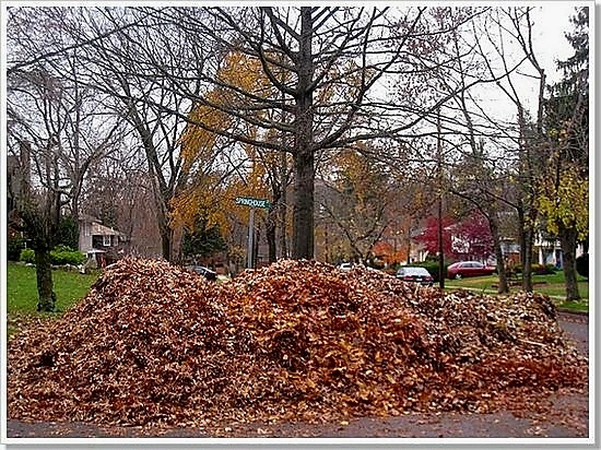 집집마다 낙엽을 모아 길가에 쌓아두면 낙엽 치우는 불도저가 한꺼번에 집중적으로 처리해 준다네.