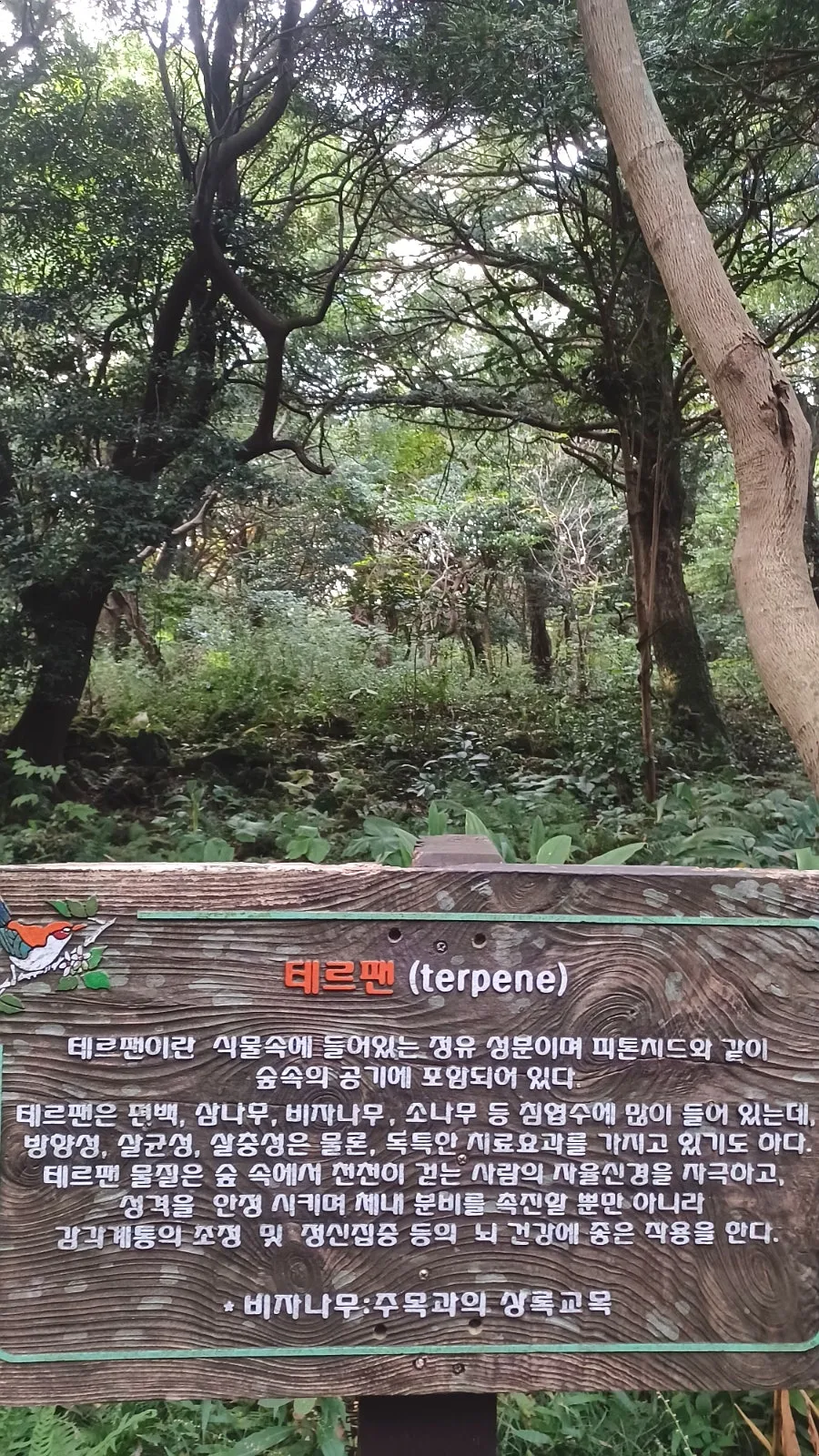 식물 속에 들어있는 정유 성분이 숲 속 공기에 녹아들어 청정히 번지는 테르펜으로 삼림욕을 할 수 있는 그곳.