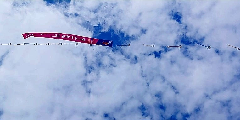 양털 구름 가득 깔린 가을 하늘 높이 결혼식을 축하하는 연이 두리둥실 떠있었다.