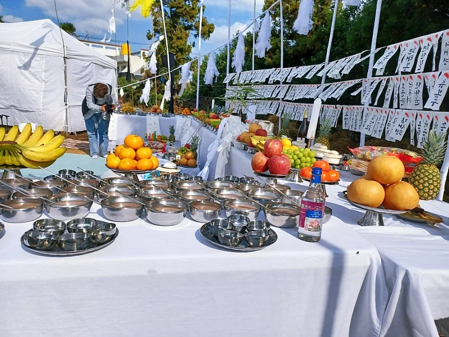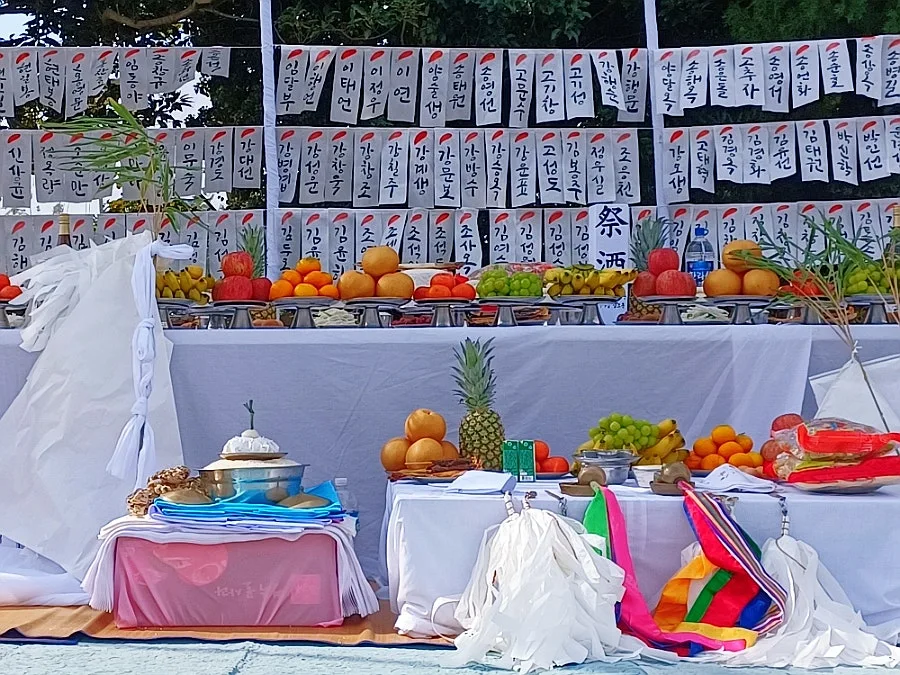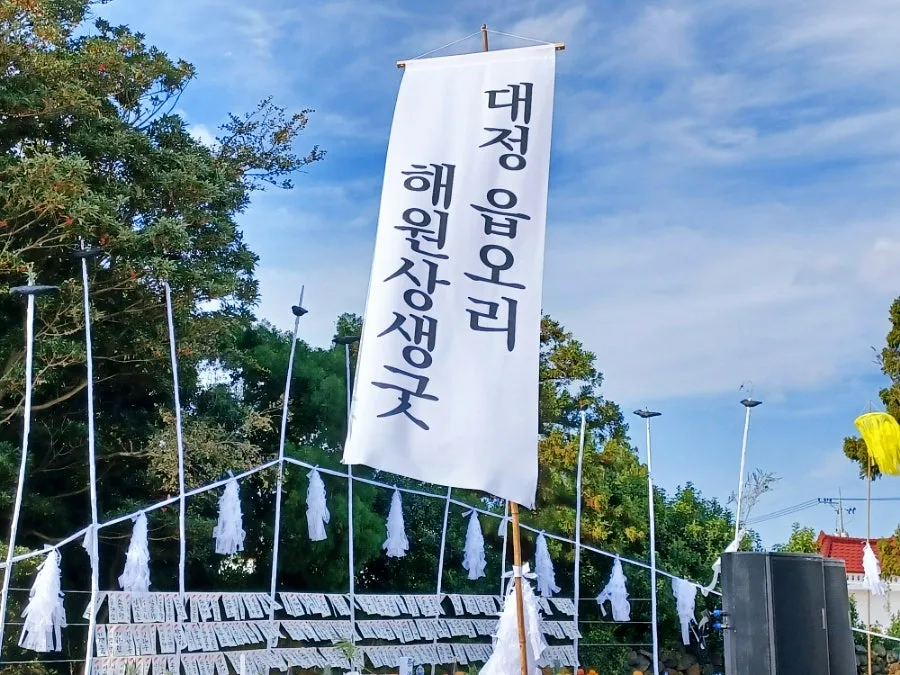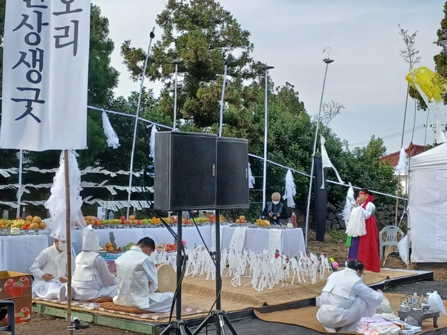 간신히 시간 놓치지 않고 행사장에 도착하자 제주 큰굿보존회 무형문화재의 굿마당이 걸게 펼쳐지고 있었다.