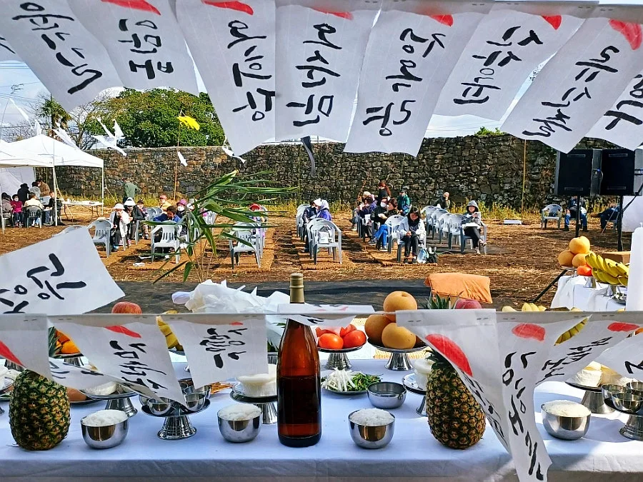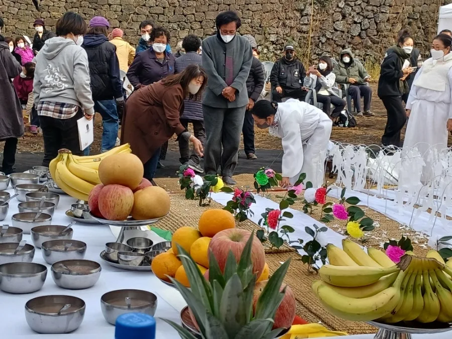 4.3 당시 섯알오름 학살터에서 억울하게 희생된 읍민들의 원혼을 위로하는 자리였다.